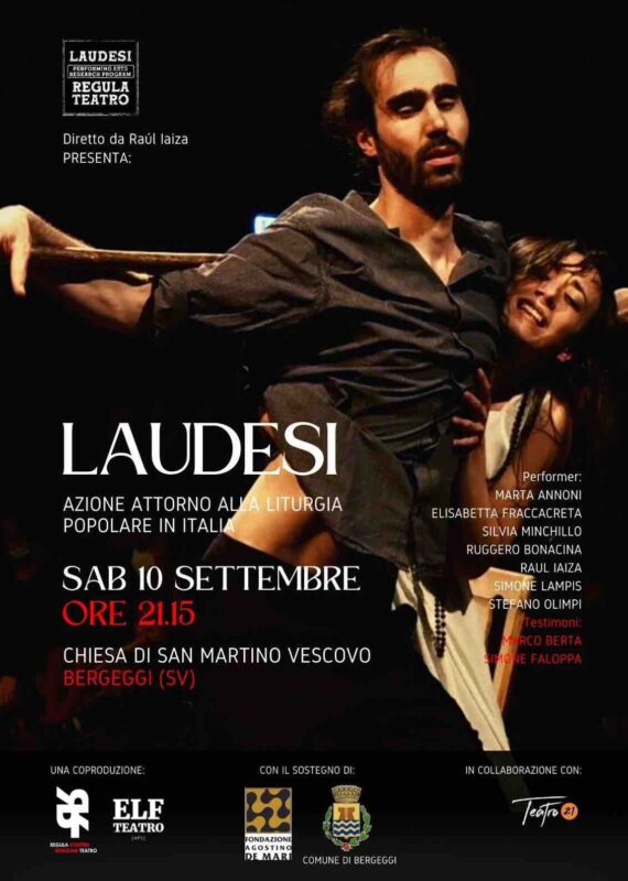 Bergeggi. Nati in seno al francescanesimo, i Laudesi erano confraternite laiche che praticavano il canto e la rappresentazione fuori dalla chiesa. Come si agivano questi drammi cantati? La rilettura del sacro nel quotidiano, nei rapporti, nella comunità, nel lavoro, nell’amore può richiamarci anche oggi? Potremo scoprirlo sabato 10 settembre alle ore 21:15 nella Chiesa San Martino Vescovo, in via santa Caterina, in una coproduzione di Regula Teatro ed ELF Teatro e diretta da Raúl Iaiza.
