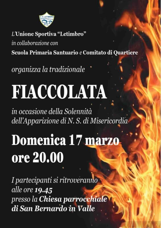 Savona. In occasione della solennità dell’apparizione di Nostra Signora di Misericordia domani, domenica 17 marzo, alla sera alle ore 20 l’Unione Sportiva Letimbro organizza la tradizionale fiaccolata.