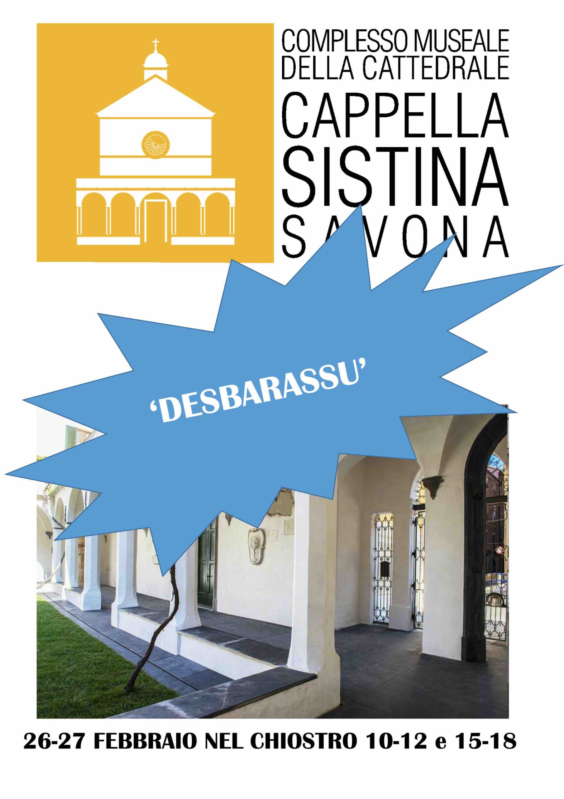 Savona. Anche il Complesso Museale della Cattedrale aderisce al calendario delle manifestazioni del Comune nel fine settimana: sabato 26 e domenica 27 febbraio nel Chiostro Francescano organizza infatti il “Desbarassu”. L’iniziativa prevederà l’offerta a costi ribassati di numerosi articoli della “Collezione Sistina” e libri di recente pubblicazione. Oltre a volumi dedicati ed esclusivi il bookshop dispone infatti di numerosi oggetti dalla veste decorata nei fregi e nei colori inconfondibili degli stucchi settecenteschi della preziosa cappella.