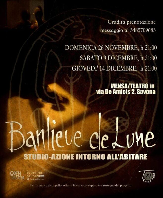 Savona. Si conclude il ciclo di iniziative sotto il titolo generale “Connessi, Custodi, Fratelli. 50 anni di Caritas per abitare il futuro” per celebrare il quinto decennio di attività dell’organismo pastorale diocesano, nato nel 1973 per volontà dell’allora vescovo Giovanni Battista Parodi. Domenica 26 novembre alle ore 21 presso il Centro Diurno di Solidarietà, in via Edmondo De Amicis 4R, sarà rappresentata la performance di teatro sociale “Banlieue du Lune – Studio/azione intorno all’abitare – open session 1” a cura di Teatro 21. L’ingresso è libero ed è gradita la prenotazione inviando un messaggio al numero 3485709683.