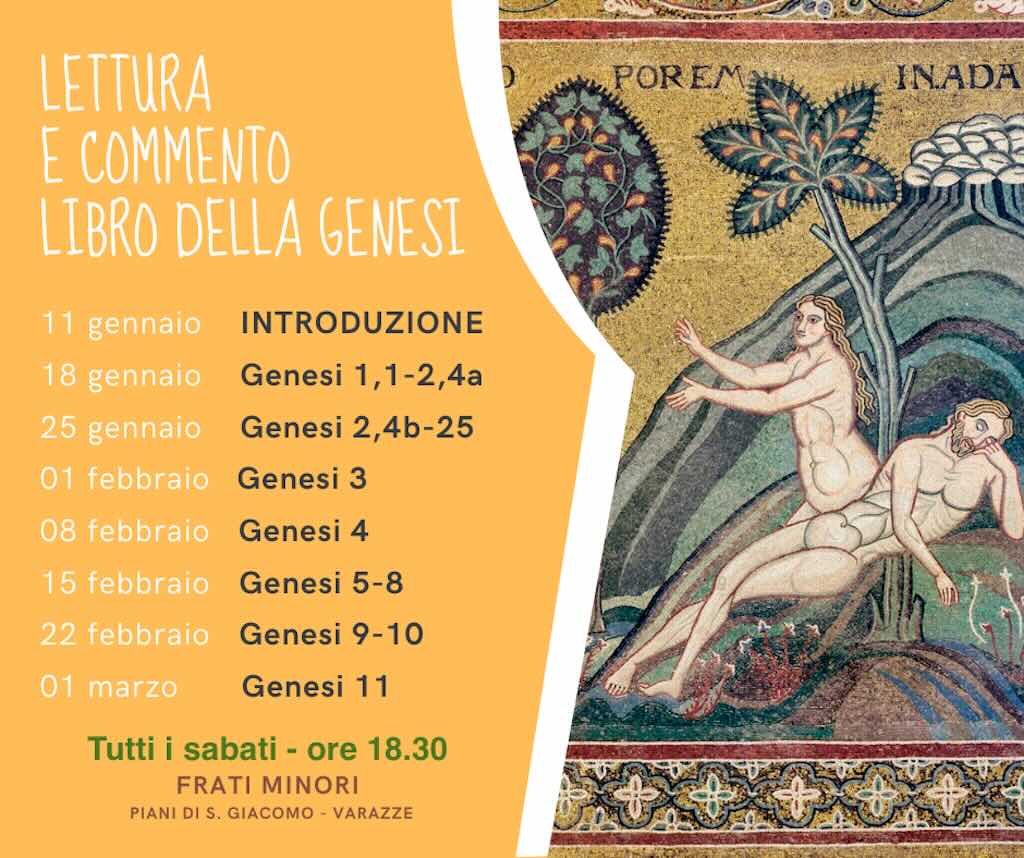 Varazze. In occasione dell’ottavo centenario della composizione del “Cantico delle Creature” (1225 – 2025) di san Francesco d’Assisi la Fraternità Francescana “Lo Spirito del Signore” dei Piani di San Giacomo propone due iniziative presso il proprio Convento San Giacomo di Latronorio, in via san Giovanni 16. Si comincerà con la lettura e il commento dei primi undici capitoli del libro della Genesi ogni sabato alle ore 18:30 dall’11 gennaio all’1 marzo.