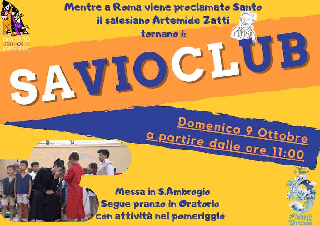 Varazze. Domenica 9 ottobre all’Oratorio Salesiano “Don Bosco” tornano i SavioClub, iniziativa di formazione e catechesi per bambini e ragazzi. Ad accompagnare i giovani durante gli incontri sono animatori appositamente preparati in corsi locali, interregionali o nazionali. I Savioclub si riuniscono ogni sabato dalle ore 15:30 alle 17 ma per i ragazzi delle superiori è possibile anche organizzare incontri serali. Dal 2 ottobre i salesiani portano avanti un analogo “doposcuola” anche nella Parrocchia San Paolo Apostolo a Savona.