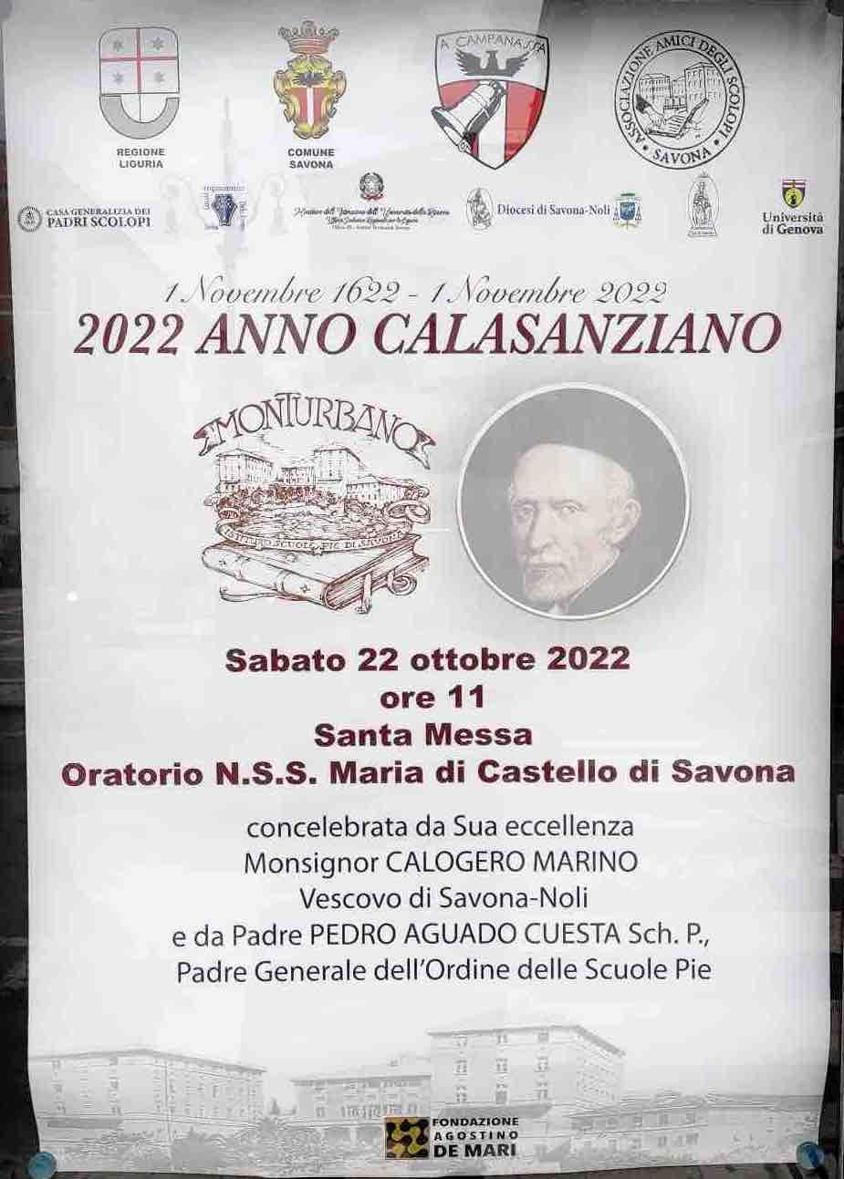Savona. Sabato 22 ottobre alle ore 11 nell’Oratorio Nostra Signora di Castello il vescovo Calogero Marino e padre Pedro Aguado Cuesta, generale dell’Ordine delle Scuole Pie, concelebreranno la messa per l'”Anno Calasanziano”. La liturgia fa parte delle iniziative promosse, tra gli altri, dalla Diocesi di Savona-Noli, dalla Regione Liguria, dal Comune, dalle associazioni A Campanassa e Amici degli Scolopi e dall’Università degli Studi di Genova.