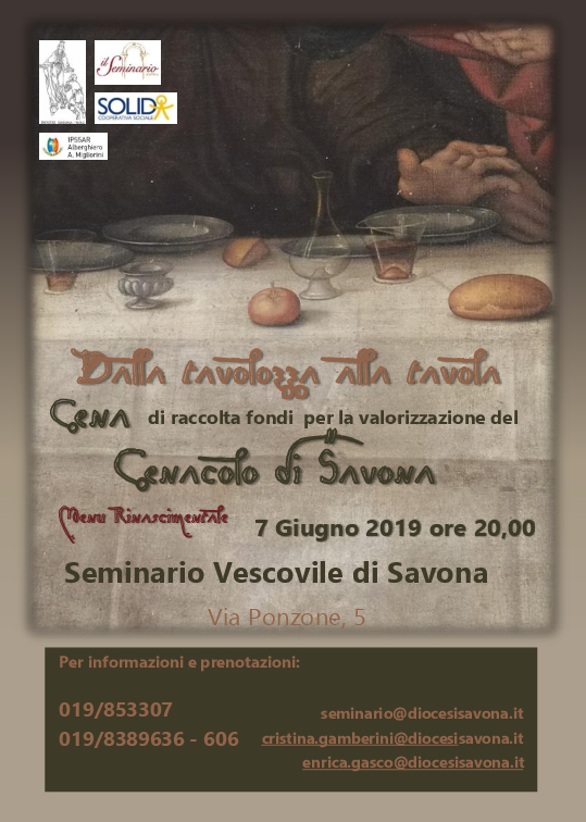 Dopo il grande successo ottenuto con la “Conversazione” dello storico dell’arte Massimo Bartoletti, che il 2 maggio 2019, nonostante la giornata fredda e uggiosa, ha attirato sulle alture di Savona circa duecento persone, la Diocesi continuerà a proporre nuove iniziative culturali, musicali e conviviali sempre dedicate al Cenacolo di Savona. Ancora nel mese di giugno, le iniziative proseguono con la visita guidata gratuita della dottoressa Silvia Bottaro il 12 e 19 giugno alle ore 1630, presso il Seminario Vescovile di Savona.