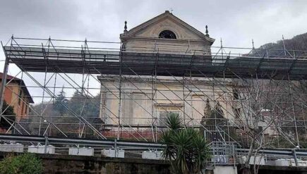 Varazze, iniziato lo smontaggio della copertura della chiesa del Pero
