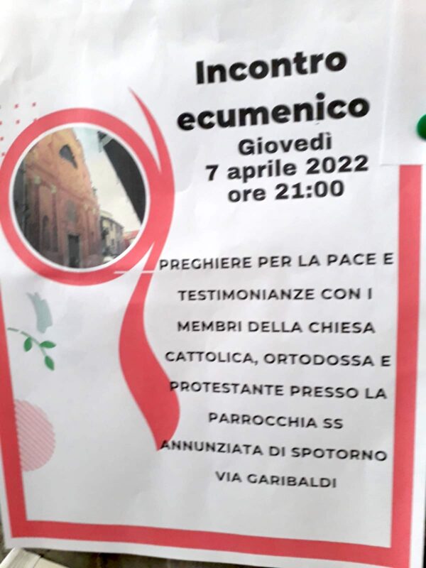 Spotorno. Giovedì 7 aprile alle ore 21 nella Chiesa Santissima Annunziata, in via Giuseppe Garibaldi, si terrà l’“Incontro Ecumenico”.