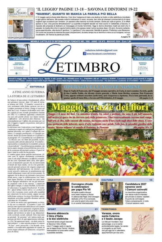 “Se l’attacco di una notizia è fondamentale, allora non giriamoci intorno: dopo 132 anni di storia, al termine del 2024, Il Letimbro cesserà di vivere, perlomeno nella forma cartacea con cui si è sempre presentato ai lettori”. Inizia così l’editoriale uscito oggi, venerdì 3 maggio, sul nuovo numero del mensile della Diocesi di Savona-Noli, che annuncia ai lettori il termine delle pubblicazioni del longevo giornale savonese. “Piange il cuore nel dirlo ma è così – prosegue il testo – Il numero di dicembre sarà l’ultimo capitolo di una vicenda giornalistica iniziata nel 1892”.