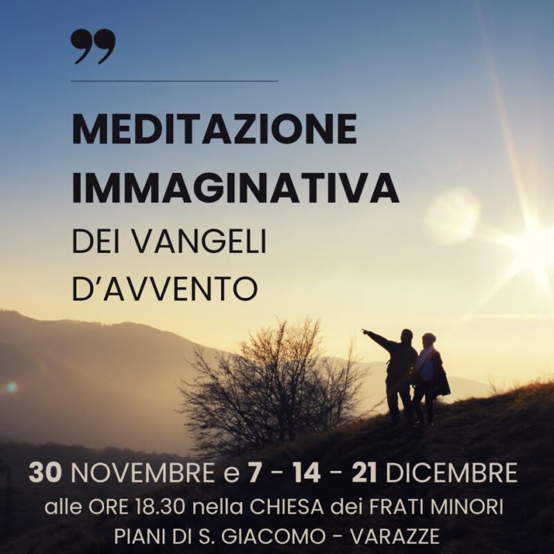Nei sabati 30 novembre e 7, 14 e 21 dicembre alle ore 18:30 nella chiesa del Convento San Giacomo di Latronorio, in via san Giovanni 16, a Varazze i Frati Minori propongono invece la “Meditazione immaginativa dei Vangeli d’Avvento”, un’esperienza rivolta a quanti desiderano una maggiore intimità con il Vangelo o ricercano un modo nuovo di pregare e crescere nel dialogo con Dio. “Si tratta di un modo per entrare in relazione con Dio facendo uso della facoltà immaginativa, secondo il metodo iniziato da sant’Ignazio – spiega padre Giuseppe Maffeis – In particolare il metodo della contemplazione immaginativa aiuta ad ‘entrare’ nel testo biblico facilitando una conoscenza di Gesù molto diretta, intima, profonda e personale”.