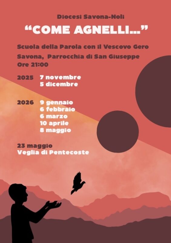 Savona. È online la registrazione del primo incontro dell’anno pastorale 2025-2026 della “Scuola della Parola”, il cammino di preghiera e formazione spirituale guidato dal vescovo Calogero Marino sul tema “Come agnelli…”, tenutosi ieri sera nella Chiesa San Giuseppe, in piazza Martiri della Libertà. Il video è visualizzabile sul sito web della Diocesi di Savona-Noli e nella playlist dedicata del canale YouTube diocesano.