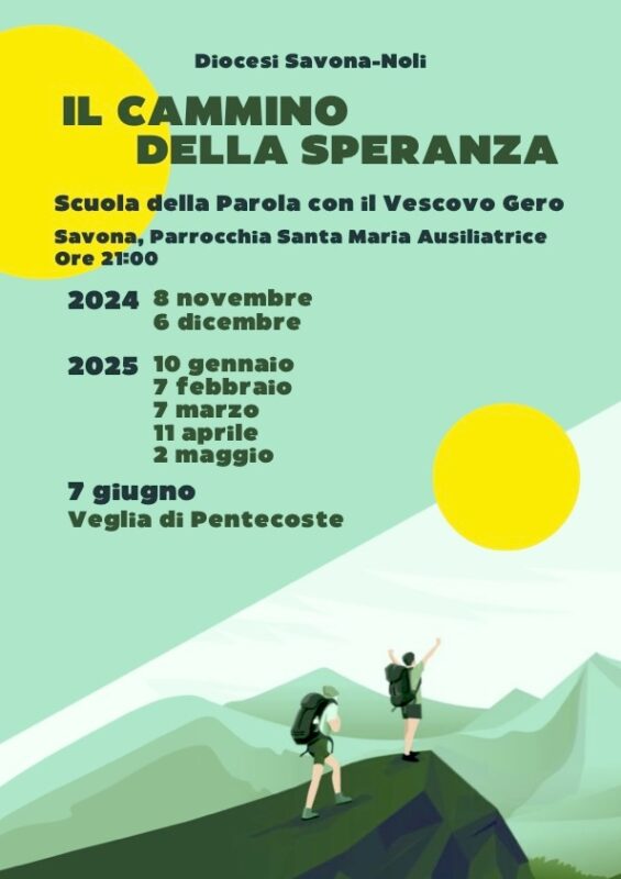 Savona. Anche in questo mese continua la “Scuola della Parola” con monsignor Calogero Marino sul tema “Il cammino di speranza”, scelto dal vescovo stesso in sintonia con quello del venticinquesimo giubileo universale ordinario del 2025, detto “della Speranza”.