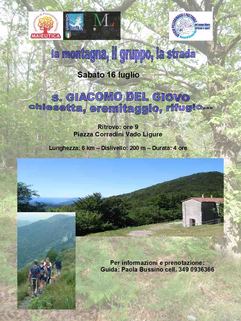 Cinque escursioni sotto il titolo “La montagna, il gruppo, la strada”: le organizza l’Ufficio Pellegrinaggi e Pastorale del Tempo libero, del Turismo e dello Sport della Diocesi di Savona-Noli. Il primo appuntamento sarà sabato 16 luglio con il trekking alla Colla di San Giacomo: partenza alle ore 9 da piazza Corradini a Vado Ligure. “Sarà un’escursione facile, della durata di quattro ore, con dislivello di 200 metri, lungo un bel sentiero nel bosco e un tempo percorso da pellegrini, soldati e mercanti”, spiega la direttrice Manuela Pastorino.
