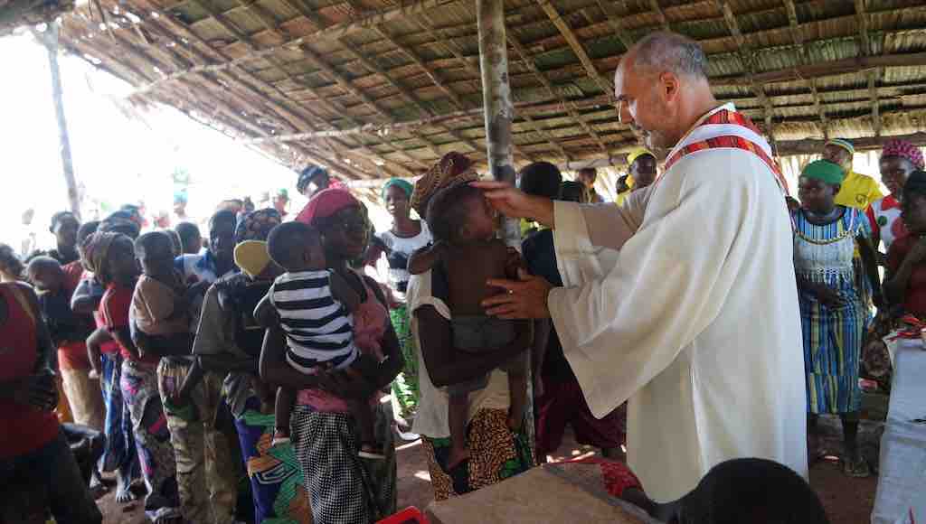 “Siamo in piena savana e intorno a noi c’è la foresta – racconta don Farina – Oltre alla pastorale della parrocchia la missione sostiene due progetti significativi. Il piccolo ospedale effettua ogni mese circa mille consultazioni, curando malattie come malaria, tifo e AIDS, e infezioni, e una volta alla settimana diversi tipi di vaccinazioni. Numerosissimi sono i casi di bambini malnutriti. Vi si può ricoverare una decina di persone e vi avvengono numerosi parti. La scuola è composta da 145 bambini dai 6 agli 8 anni, dei quali molti sono pigmei Bayaca, e dura due anni, dopo i quali comincia quella elementare statale. Terminata la lezione, agli alunni viene dato il pranzo, per la maggior parte di loro unico pasto della giornata”.