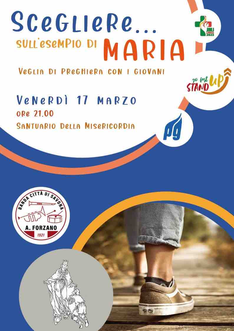 Venerdì alle 20 presso la prima cappelletta le confraternite guideranno la recita del rosario, da San Bernardo in Valle partirà la fiaccolata organizzata dal Centro Sportivo Italiano e dall’Unione Sportiva Letimbro 1945 e alle 21 l’Azione Cattolica e l’Ufficio per la Pastorale Giovanile diocesani proporranno la veglia di preghiera “Scegliere… sull’esempio di Maria”, anche in vista della Giornata Mondiale della Gioventù di Lisbona e intervallata dai brani musicali eseguiti dal Complesso Bandistico Città di Savona “Antonio Forzano”.