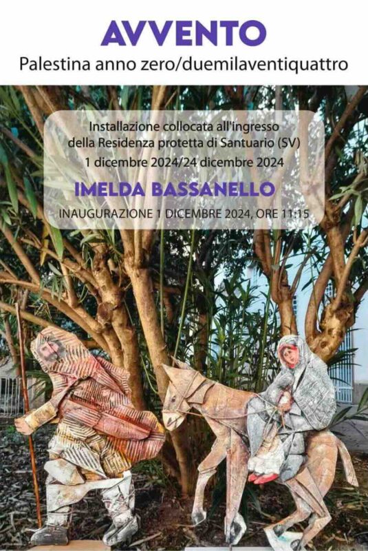 Fino al 24 dicembre presso la Residenza Sanitaria Assistenziale “Santuario”, nell’omonima frazione di Savona, è visitabile l’installazione artistica “Avvento” di Imelda Bassanello. “Può essere storia o religione non importa, ho voluto omaggiare Maria e Giuseppe, profughi nella loro stessa terra, la Palestina”, spiega l’artista. Invece dall’8 dicembre lungo la via che conduce alla Basilica Nostra Signora di Misericordia si potrà ammirare “Processione d’inverno”, installazione artistica a cura della stessa Bassanello e degli abitanti della valle del Letimbro. Entrambe le mostre sono inserite nel calendario di eventi “Dicembre a Santuario”.