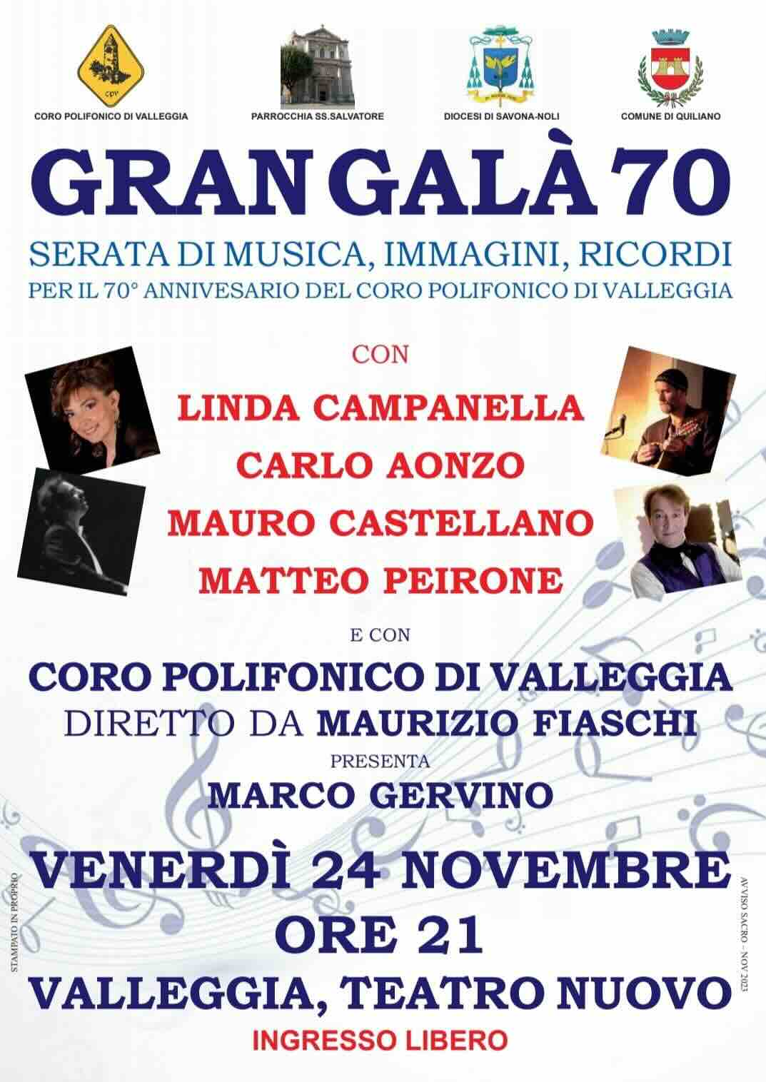 A Quiliano grandi talenti savonesi delle note si uniscono assieme per un importante compleanno. Venerdì 24 novembre alle ore 21 al Teatro Nuovo, nella frazione Valleggia, si terrà infatti un’imperdibile serata di musica ed emozioni: “Gran Galà 70”, evento clou delle celebrazioni per il settantesimo del Coro Polifonico di Valleggia, storica e apprezzata realtà fondata nel 1953. Ospiti d’onore di questa grande festa quattro professionisti che da tempo portano il proprio talento e il nome di Savona in giro per il mondo, accomunati da sentimenti di amicizia e il coro.