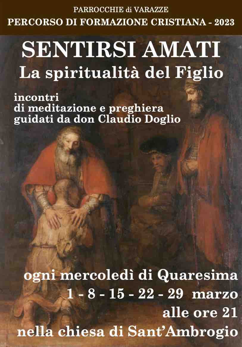 Le parrocchie di Varazze promuovono invece il percorso di formazione cristiana “Sentirsi amati. La spiritualità del Figlio”, ogni mercoledì di marzo alle ore 21 nella Collegiata Sant’Ambrogio Vescovo: cinque catechesi sulla vita spirituale guidate da don Claudio Doglio. Lo spunto viene dal teologo Henri Nouwen, il quale ha sviluppato il tema in alcune sue opere per aiutare il cristiano di oggi a identificarsi con il “Figlio” stesso, che è Gesù, e sentirsi ugualmente amato dal Padre.