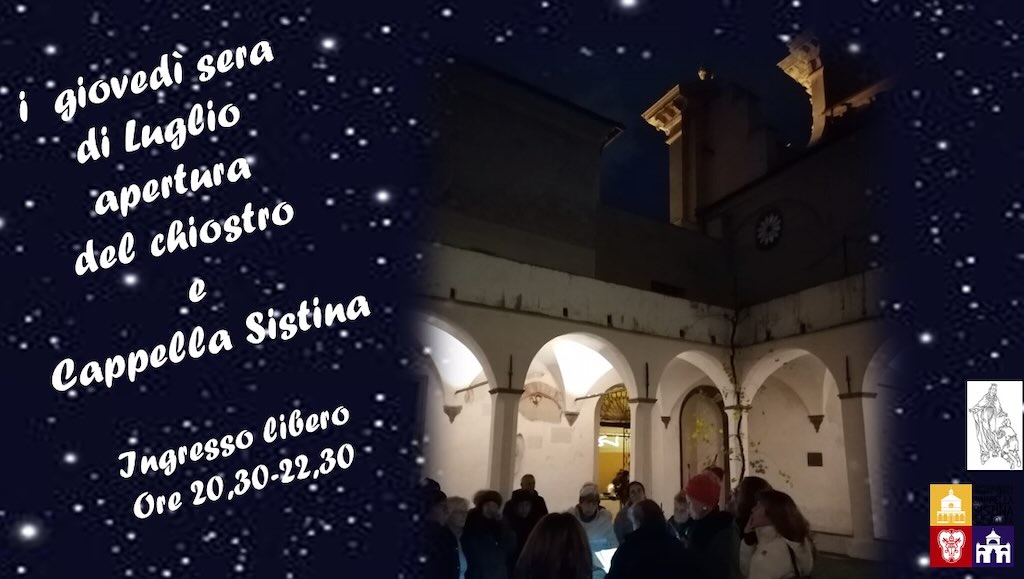 Savona. Ritornano le aperture del Chiostro Francescano e della Cappella Sistina nelle sere dei giovedì di luglio. Come ormai consuetudine, anche quest’anno con ingresso libero sarà possibile visitare le parti salienti del complesso museale attraversando ambienti dalla tipica atmosfera di pace e serenità. Una passeggiata a partire dall’accogliente chiostro, nella magia dell’illuminazione ovattata, fino alla cappella roveresca, con la sua arte declinata dal Rinascimento al Rococò.