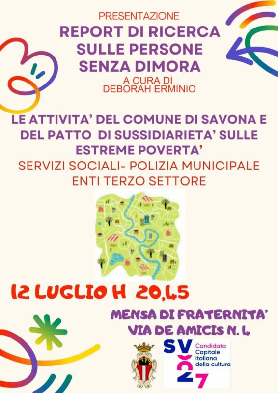 La mappatura riguarda i luoghi coinvolti, le caratteristiche delle persone interessate e le relazioni con il contesto e indaga le motivazioni che originano il fenomeno. Alla tavola rotonda prenderanno parte Monica Rocchetta, coordinatrice dei Servizi Sociali del Comune, Igor Aloi, comandante del corpo di Polizia Locale, e Marco Giana della Caritas della Diocesi di Savona-Noli e coordinatore dei soggetti del terzo settore che compongono l’Unità di Strada.