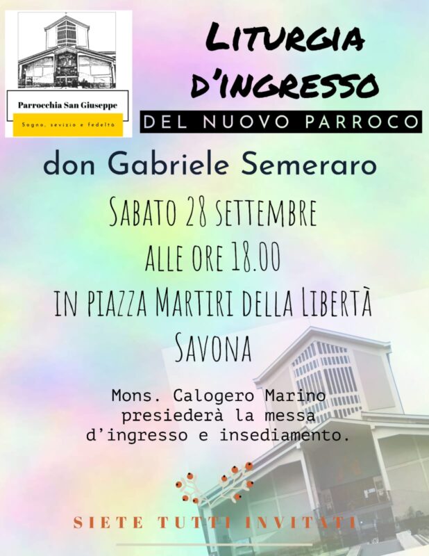 Savona. Sabato 28 settembre nella Chiesa San Giuseppe, in piazza Martiri della Libertà, nel quartiere Oltreletimbro, don Gabriele Semeraro diventerà il nuovo parroco con la celebrazione eucaristica di ingresso e insediamento delle ore 18 presieduta dal vescovo Calogero Marino.