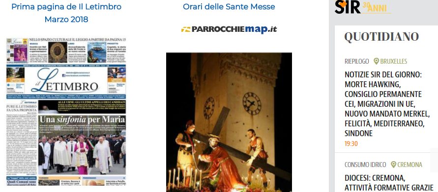 Sul nuovo sito della Diocesi www.chiesasavona.it è disponibile un servizio utilissimo e molto pratico che informa chiunque in pochissimi istanti su tutti gli orari delle Messe nel territorio.