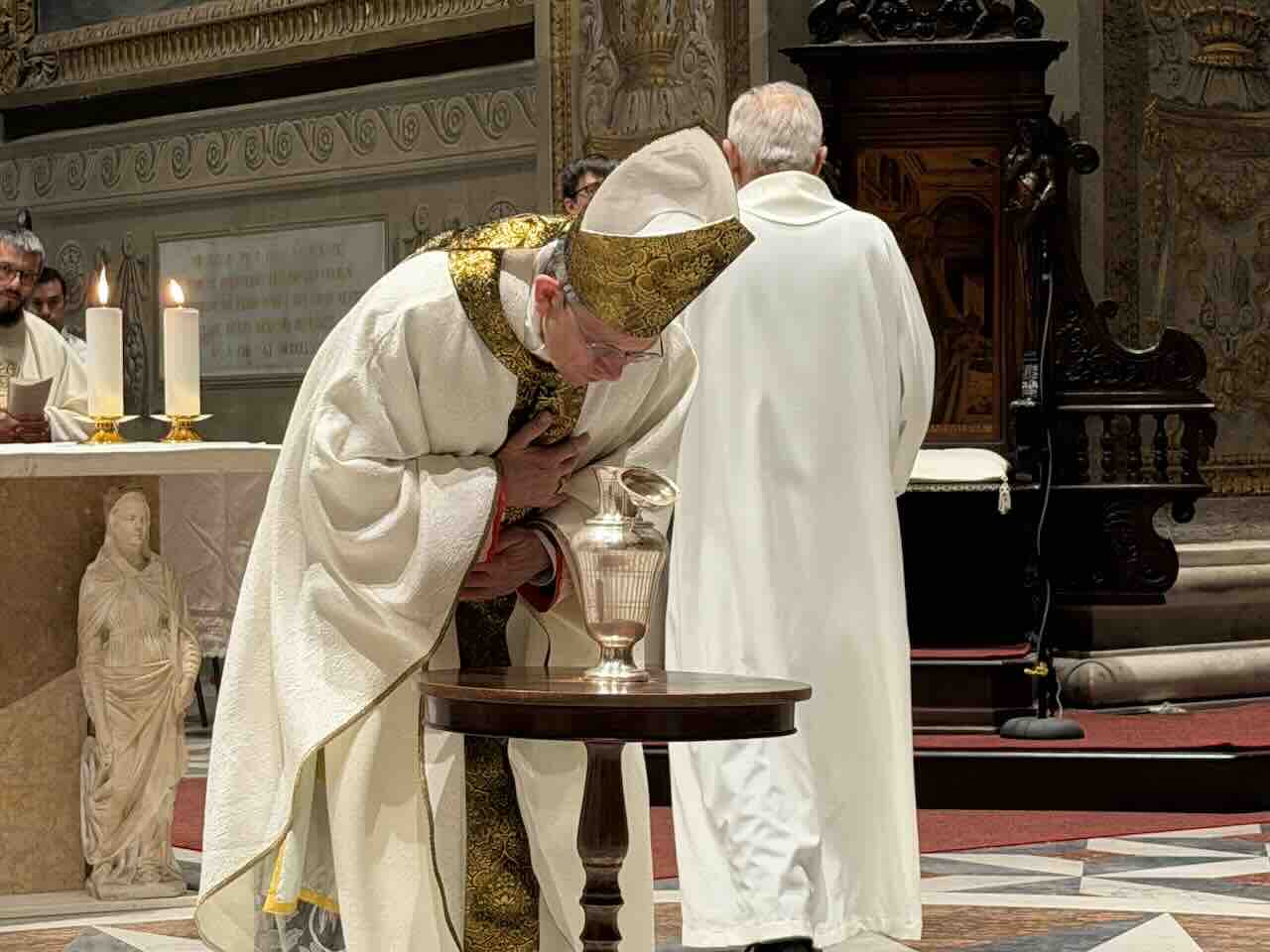 Concludo. Perché proprio nell’ottica della preghiera siamo chiamati ad accogliere gli oli, consacrati dallo Spirito, che sono al centro della nostra celebrazione: