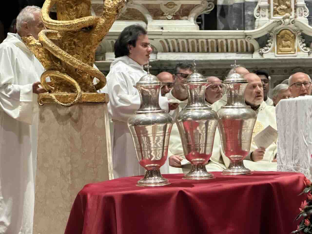 – l’olio dei catecumeni, che accompagna e sostiene il cammino di chi comincia a conoscere Gesù